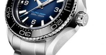 Αυτό είναι το “Ultra Deep” της Omega, σειράς Seamaster Planet Ocean 6000M, με μπρασελέ από ατσάλι O‑MEGASTEEL και καντράν μπλε…