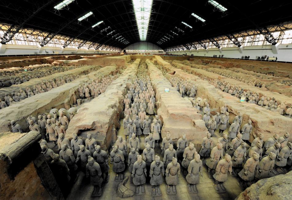 Αγρότες ανακάλυψαν για πρώτη φορά τους 8.000 πολεμιστές από τερακότα θαμμένους σε απόσταση μικρότερη του ενός χιλιομέτρου από τον τάφο του πρώτου αυτοκράτορα της Κίνας, Qin Shi Huang, το 1974. Ωστόσο, δεν υπήρχε παράδοση στην κατασκευή αγαλμάτων σε πραγματικές διαστάσεις στην Κίνα, προτού δημιουργηθεί ο τάφος. Τα πρώιμα αγάλματα ήταν απλά ειδώλια περίπου 20 εκατοστών σε ύψος.