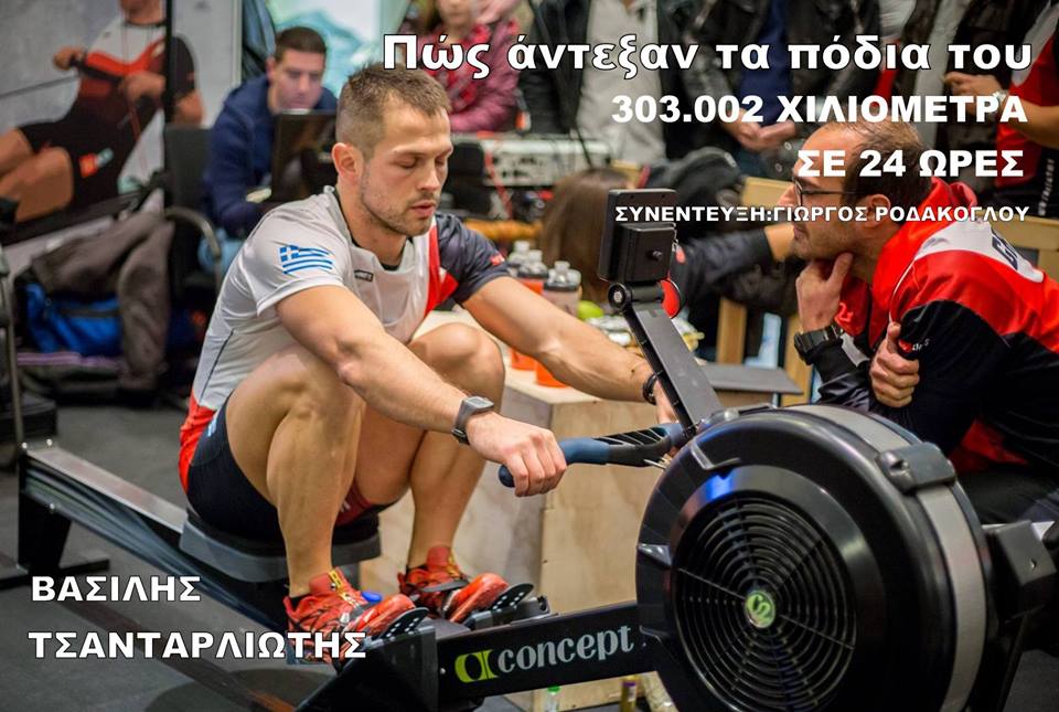 Μοναδική για τα ελληνικά δεδομένα η επίδοση του πρωταθλητή στην κωπηλασία Βασίλη Τσανταρλιώτη, αφού κατάφερε να κωπηλατήσει 303.002 χιλιόμετρα σε 24 ώρες χρησιμοποιώντας έναν εξομοιωτή της κωπηλατικής κίνησης (κωπηλατο-εργόμετρο).