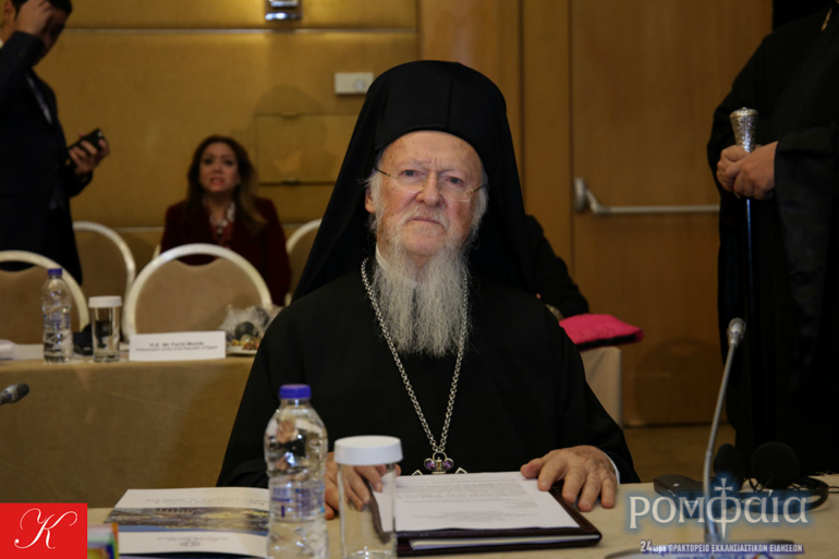Ἐπιτρέψατε, τέλος, νά γνωρίσωμεν εἰς τήν παροῦσαν ὑψηλοῦ ἐπιπέδου Διάσκεψιν ὅτι ἐν συσκέψει πρό τινων ἐτῶν εἰς τήν ἕδραν τοῦ Οἰκουμενικοῦ Πατριαρχείου μετά τῶν Μακαριωτάτων Προκαθημένων τῶν πρεσβυγενῶν Ὀρθοδόξων Πατριαρχείων, προσφιλῶν ἐν Χριστῷ ἀδελφῶν Θεοδώρου Ἀλεξανδρείας, Θεοφίλου Ἱεροσολύμων, τοῦ Ἀρχιεπισκόπου τῆς παλαιφάτου Αὐτοκεφάλου Ἐκκλησίας τῆς Κύπρου Χρυσοστόμου καί τοῦ Ἀντιπροσώπου τοῦ Πατριάρχου Ἀντιοχείας Θεοφιλεστάτου Ἐπισκόπου Ἀπαμείας κ. Ἰσαάκ, ἐκρίναμεν χρήσιμον καί δή καί ἀναγκαῖον, ἕν λεπτομερές σχέδιον ΟΙΚΟΛΟΓΙΚΗΣ ΧΑΡΤΑΣ ΤΗΣ ΜΕΣΟΓΕΙΟΥ, εἰς τό ὁποῖον προβλέπεται πολυετής καί πολυδιάστατος συνεργασία τῶν τριῶν μονοθεϊστικῶν παραδόσεων πρός, ἀφ’ ἑνός, ἀπό κοινοῦ ἀντιμετώπισιν οἰκολογικῶν προβλημάτων τῆς Μεσογείου καί τῆς εὐρυτέρας περιοχῆς καί, ἀφ’ ἑτέρου, προαγωγήν τῆς εἰρηνικῆς συμβιώσεως τῶν τέκνων τοῦ Ἀβραάμ. Εὐελπιστοῦμεν ὅτι θετικαί ἐξελίξεις εἰς τήν περιοχήν, συντόμως θά ἐπιτρέψουν τήν διεκκλησιαστικήν καί διαθρησκειακήν ἐξέτασιν καί ἐφαρμογήν τῆς ἐν λόγῳ ΧΑΡΤΑΣ.
