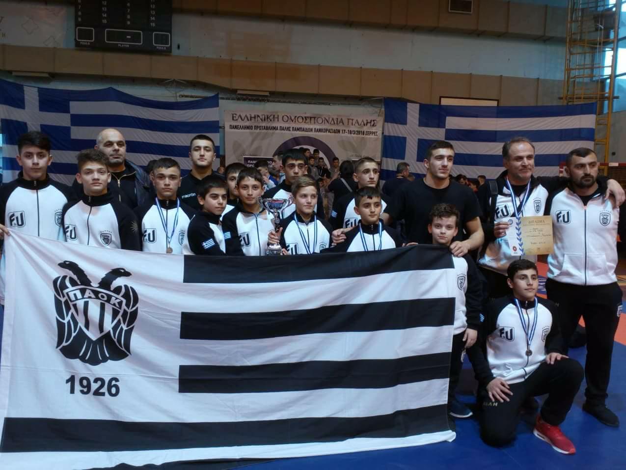 Την 2η θέση στο Πανελλήνιο πρωτάθλημα παμπαίδων με 40 βαθμούς κατέκτησε η ομάδα πάλης του ΠΑΟΚ. Ο απολογισμός για τον “Δικέφαλο” ήταν 2 Χρυσά, 1 Αργυρο, 2 Χάλκινα.