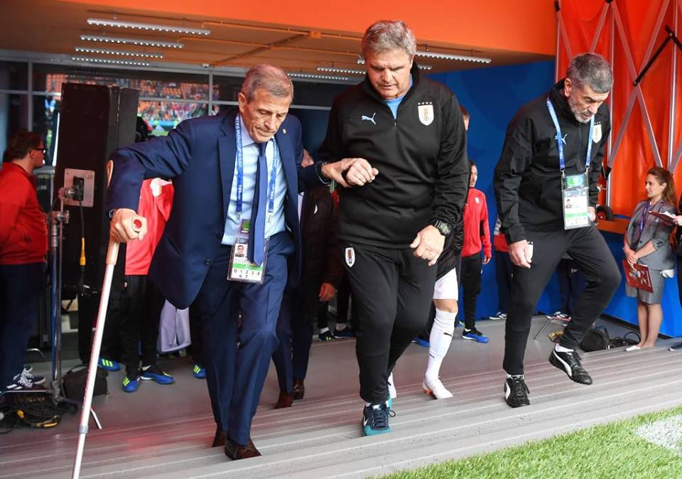 Λίγα χρόνια πριν, ο προπονητής της Ουρουγουάης διαγνώστηκε με μια σπάνια νευροπάθεια που παρέλυσε μέρη του σώματος του. Στη θέση του άλλοι θα τα παρατούσαν, εκείνος όμως κάθισε στον πάγκο της Ουρουγουάης στο επετειακό Copa America σε ένα αυτοκινούμενο αναπηρικό καροτσάκι και, στα 71 του πια, στο φετινό Mundial, βαστά ένα δεκανίκι για να σηκωθεί να τραγουδήσει τον εθνικό ύμνο της χώρας του και να πανηγυρίσει τα γκολ της ομάδας του. Παλεύει με αυτό που τον παλεύει και νικάει.