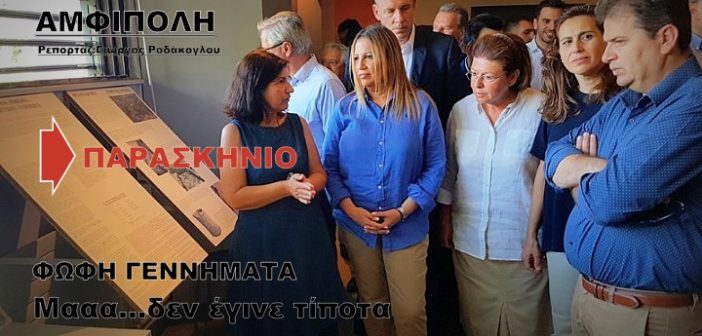 Η επίσκεψη της κυρίας Γεννηματά στην Αμφίπολη σε σχέση με άλλους πολιτικούς αρχηγούς, άφησε ως απόηχο μια ευγενική εικόνα. Η απλότητα και η γνώση της στα ζητήματα της ανασκαφής του τύμβου Καστά ήταν αυτό που δεν πέρασε απαρατήρητο.