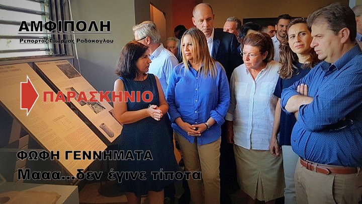 Μέσα λοιπόν σ αυτό το κλίμα ανησυχίας που παρατηρήθηκε τις τελευταίες ώρες σε τοπικό πολιτικό επίπεδο, από την παρουσία της κυρίας Γεννηματά στις Σέρρες και στην Αμφίπολη δεν αποκλείεται το ενδεχόμενο κατά το επόμενο χρονικό διάστημα να ληφθούν ορισμένα μέτρα και τα πρώτα από αυτά από πλευράς Υπουργείου Πολιτισμού.
