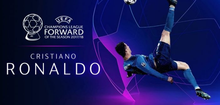 Ο Κριστιάνο Ρονάλντο πήρε το βραβείο του κορυφαίου επιθετικού της περασμένης διοργάνωσης. Ο CR7 οδήγησε την Ρεάλ στο τρίτο διαδοχικό τρόπαιο του Champions League.