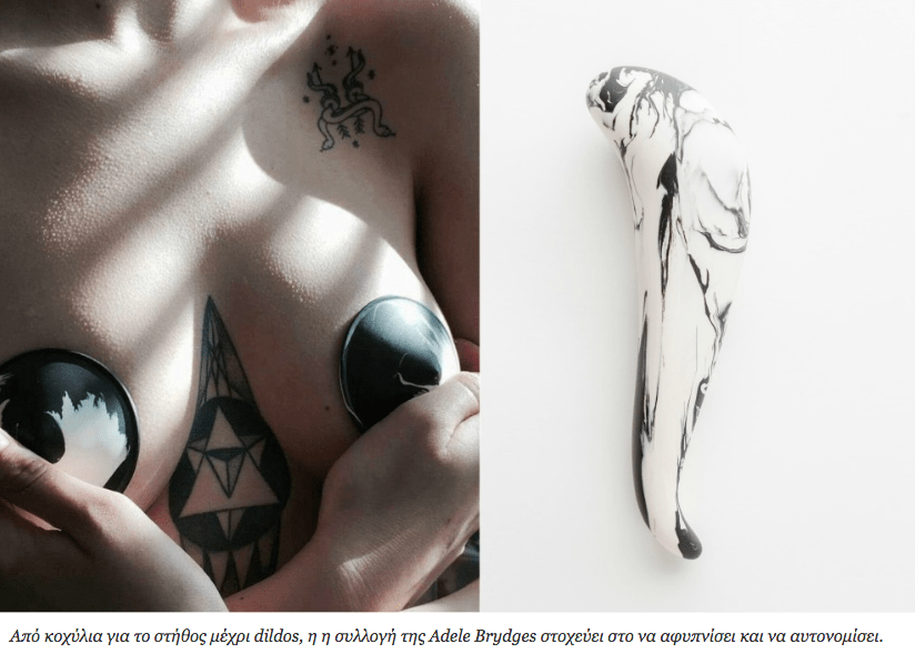 Η Adele Brydges είναι μια Βρετανή σχεδιάστρια με πάθος για την τεχνική, τα εξαιρετικά υλικά, βαθιά γνώση και δέσμευση στην επιδίωξη της πρωτοτυπίας. Με κίνητρό της τον ερωτισμό, την αυθεντικότητα και γοητεία της αφής, όπως και την ομορφιά της αντιπαράθεσης ετερόκλητων υλικών, δημιουργεί αισθησιακά έργα/εργαλεία, τα οποία παραπέμπουν σ’ ένα σχεδιασμό και μια ρωμαλέα αισθητική που είναι μια ωδή στη φόρμα, τη λειτουργία και το μέσο, με στόχο το σεξουαλικό και ερωτικό ευ ζην.