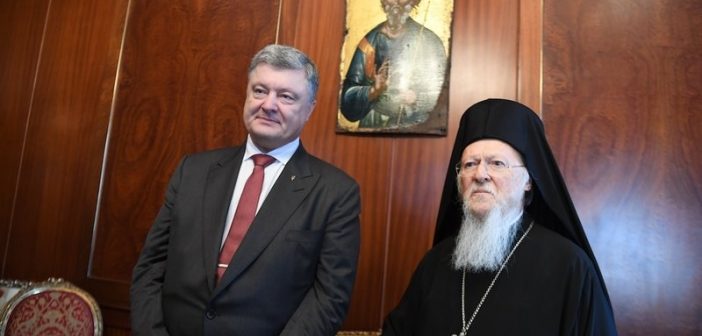 Τη βούλησή τους να εντείνουν τη συνεργασία μεταξύ του Οικουμενικού Πατριαρχείου και της Ουκρανικής Πολιτείας, στο πλαίσιο της διαδικασίας για την εκχώρηση Αυτοκεφαλίας στην ενιαία Ορθόδοξη Εκκλησίας της χώρας, επαναβεβαίωσαν ο Οικουμενικός Πατριάρχης Βαρθολομαίος και ο Πρόεδρος της Ουκρανίας, Πέτρο Ποροσένκο, ο οποίος πραγματοποίησε σήμερα επίσκεψη στην Έδρα του Οικουμενικού Πατριαρχείου, στο Φανάρι. Ο Πρόεδρος κ. Ποροσένκο, ο οποίος συνοδευόταν από τους αντιπροέδρους της κυβερνήσεώς του, Stepan Kubiv και Gennadiy Zubko, τους υπουργούς Εξωτερικών, Pavlo Klimkin, ‘Αμυνας, Stepan Poltorak, τον γενικό εισαγγελέα, Yuriy Lutsenko, πολυμελές κλιμάκιο συνεργατών του και τον πρέσβη της χώρας του στην ‘Αγκυρα, Andriy Sybiga, έγινε εγκαρδίως δεκτός από τον Οικουμενικό Πατριάρχη Βαρθολομαίο.