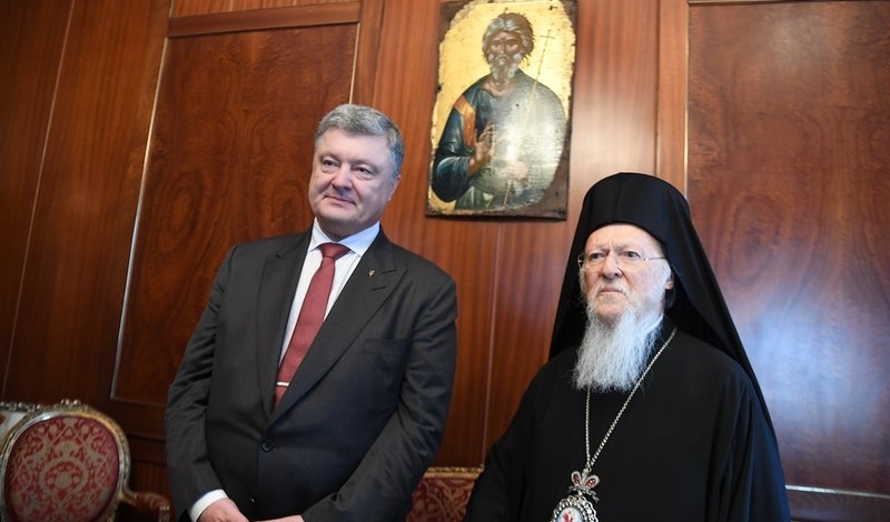 Προηγουμένως, ο Πρόεδρος της Ουκρανίας χαρακτήρισε και εκείνος ιστορική τη σημερινή ημέρα: «Οι Ουκρανοί ήθελαν και προσεύχονταν για να έχουμε μια ενιαία, τοπική, αυτοκέφαλη Εκκλησία. Μετά το Πάσχα, 9 Απριλίου, σ’ αυτό το γραφείο (σημ. εννοεί το Πατριαρχικό Γραφείο) συναντηθήκαμε με τον Παναγιώτατο και συμφωνήσαμε να προχωρήσουμε για τη χορήγηση αυτοκεφάλου στην Ουκρανική Εκκλησία. Προσωπικά εγώ και η Βουλή κάναμε πολλά για να έχει ο ουκρανικός λαός το Αυτοκέφαλο.