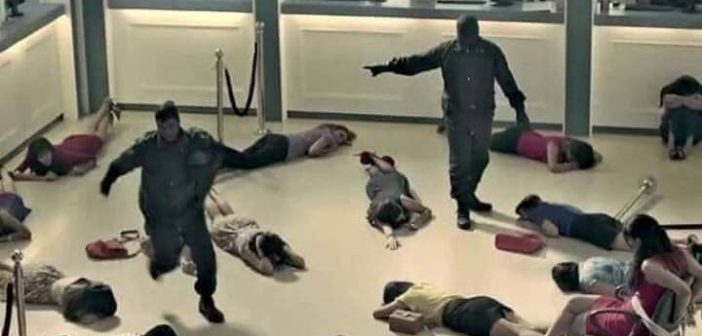 Κατά τη διάρκεια μιας ληστείας, ο ληστής φώναξε: “Μείνετε ακίνητοι. Τα λεφτά ανήκουν στο κράτος. Η ζωή ανήκει σε εσάς.”