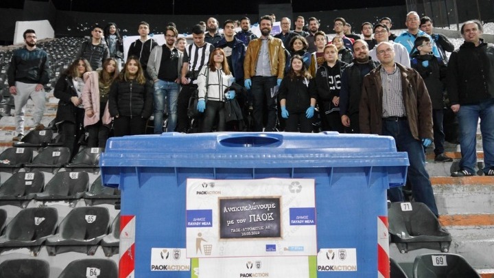 Συγκεκριμένα, χθες το απόγευμα, η ΠΑΕ ΠΑΟΚ μέσω του προγράμματος PAOK Action και στο πλαίσιο μιας συνέργειας ανακύκλωσης με τον δήμο Παύλου Μελά, φιλοξένησε στη Θύρα 8, μαθητές που συνοδεύονταν από εκπαιδευτικούς, γονείς και υπηρεσιακούς παράγοντες του Τμήματος Καθαριότητας της Διεύθυνσης περιβάλλοντος και πρασίνου του δήμου. Αμέσως μετά την ολοκλήρωση του αγώνα και την αποχώρηση των φιλάθλων, οι μαθητές παρέμειναν στις κερκίδες και προχώρησαν σε μια συμβολική συγκομιδή των ανακυκλώσιμων υλικών.