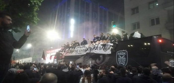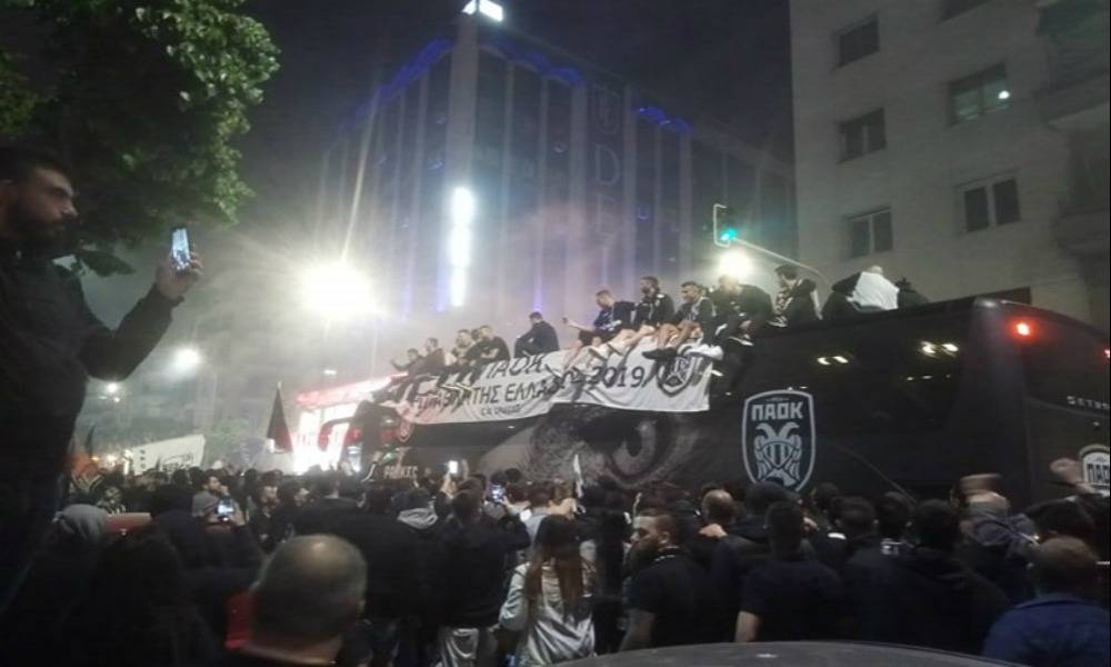 Mε το που έφτασε το πούλμαν της αποστολής του ΠΑΟΚ στον Λευκό Πύργο, η νύχτα έγινε μέρα από τους οπαδούς των νταμπλούχων, που αποθέωσαν τους παίκτες, το προπονητικό επιτελείο και τον Ιβάν Σαββίδη, που ύψωσε στον ουρανό της Θεσσαλονίκης το Κύπελλο Ελλάδος.