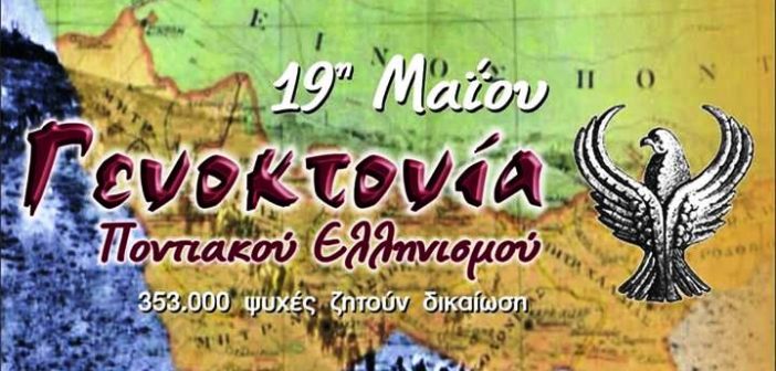 Συμπληρώνονται σήμερα, 19 Μαΐου, 101 χρόνια από τη Γενοκτονία των Ελλήνων του Πόντου. Λόγω της πανδημίας του κορονοϊού οι εκδηλώσεις μνήμης που θα πραγματοποιηθούν με διαφορετικό τρόπο και σύμφωνα με εγκύκλιο προς τους δήμους και τις Περιφέρειες της χώρας που εξέδωσε το υπουργείο Εσωτερικών. Οι εκδηλώσεις περιλαμβάνουν γενικό σημαιοστολισμό, φωταγώγηση των δημοσίων κτιρίων και των δημοτικών και περιφερειακών καταστημάτων, τέλεση δοξολογιών, ομιλιών και καταθέσεις στεφάνων στις έδρες των Περιφερειών και των Περιφερειακών Ενοτήτων. Λόγω των εκτάκτων μέτρων που έχουν ληφθεί για τον περιορισμό του covid-19, οι εκδηλώσεις θα πραγματοποιηθούν σύμφωνα με τις ισχύουσες υγειονομικές διατάξεις και οι καταθέσεις στεφάνων θα γίνουν με την παρουσία περιορισμένου αριθμού ατόμων.