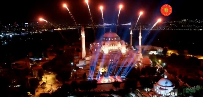 Ο εκπρόσωπος του προέδρου πρόσθεσε ότι όταν μπήκε ο Μωάμεθ ο Πορθητής στην Πόλη «η Αγία Σοφία ήταν ένα ετοιμόρροπο και ξεχασμένο κτήριο, ωστόσο το πνεύμα της κατάκτησης ήταν εκείνο που κράτησε όρθια την Αγία Σοφία και έκανε την Κωνσταντινούπολη μια παγκόσμια πόλη».