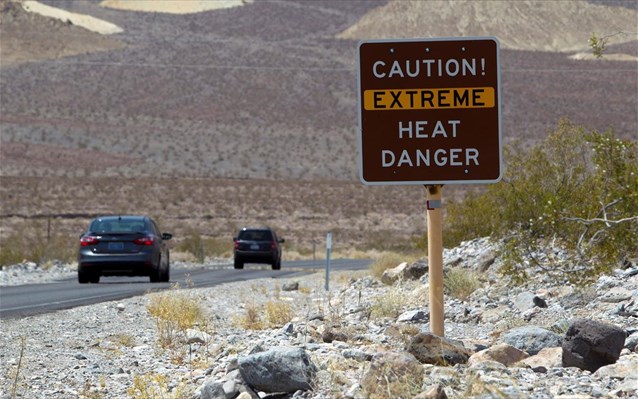 Θερμόμετρο στο Φέρνας Κρικ της «Κοιλάδας του Θανάτου», στην έρημο της Νότιας Καλιφόρνιας, έδειξε 130 βαθμούς Φαρενάιτ (54,4 βαθμούς Κελσίου), την υψηλότερη θερμοκρασία παγκοσμίως εδώ και πάνω από έναν αιώνα, όπως ανακοινώθηκε από την αμερικανική Εθνική Μετεωρολογική Υπηρεσία (NWS). «Αν επιβεβαιωθεί, θα είναι η υψηλότερη επίσημα επιβεβαιωμένη θερμοκρασία από τον Ιούλιο του 1913», ανακοίνωσε η Εθνική Μετεωρολογική Υπηρεσία στο Λας Βέγκας χθες, Κυριακή, το απόγευμα, υπογραμμίζοντας ότι η καταγραφή είναι προκαταρκτική. Το ρεκόρ θα χρειαστεί να εξετασθεί επισήμως, πριν επιβεβαιωθεί, λόγω της σημασίας του, πρόσθεσε η NWS στον λογαριασμό της στο Twitter.