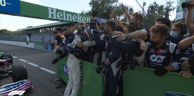 Ο 24χρονος πιλότος της Alpha Tauri ανέτρεψε όλα τα προγνωστικά, καθώς εκμεταλλεύτηκε με τον καλύτερο τρόπο, όλα τα «απρόοπτα» του αγώνα, αφήνοντας πίσω του τον Ισπανό πιλότο της McLaren, Κάρλος Σάινθ, και στην τρίτη τον Καναδό, Λανς Στρολ, της Racing Point. Αν και μετά την εκκίνηση του αγώνα όλα έδειχναν ότι ο Χάμιλτον θα έφτανε σε μία ακόμη νίκη, ωστόσο, η Ferrari έφερε τα πάνω κάτω, παρότι και τα δύο μονοθέσιά της έμειναν από νωρίς εκτός αγώνα.