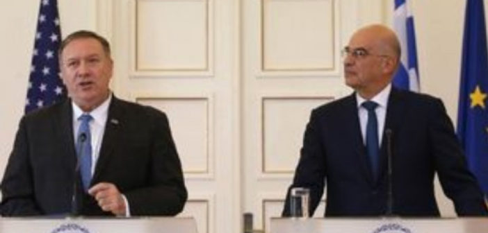 Με τον ομόλογό του των Ηνωμένων Πολιτειών της Αμερικής, Μάικ Πομπέο, θα συναντηθεί τη Δευτέρα, στις 10:00 το πρωί, στη Θεσσαλόνικη, ο υπουργός Εξωτερικών Νίκος Δένδιας. Οι συζητήσεις, σύμφωνα με ανακοίνωση του υπουργείου Εξωτερικών, θα εστιασθούν σε ζητήματα διμερούς, περιφερειακού και διεθνούς ενδιαφέροντος, με έμφαση στο Στρατηγικό Διάλογο Ελλάδας-ΗΠΑ, την αμυντική και ενεργειακή συνεργασία και τις εξελίξεις στην ευρύτερη περιοχή της Ανατολικής Μεσογείου.