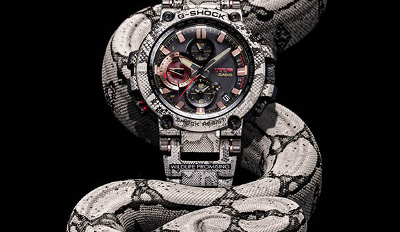 Η Casio G-SHOCK συνεργάστηκε για δεύτερη φορά με τον Wildlife Promising, έναν μη κερδοσκοπικό οργανισμό αφιερωμένο στην προστασία της άγριας ζωής στην Αφρική, και το αποτέλεσμα ήταν ένα μοντέλο περιορισμένη έκδοσης της σειράς MT-G. Το νέο μοντέλο MTGB1000WLP1 παίρνει έμπνευση από τον Αφρικανικό πύθωνα των βράχων και διαθέτει ένα καφέ, μαύρο και χρυσό μοτίβο στο λουράκι, την κάσα και την στεφάνη, που έγινε με χάραξη λέιζερ, με σκοπό να θυμίζει το δέρμα του μεγαλύτερου πύθωνα της Αφρικής.