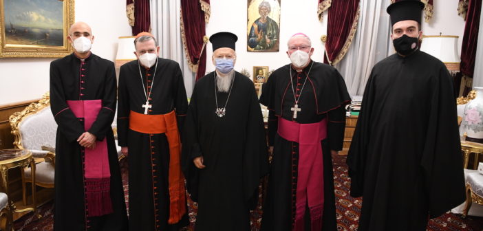Η Παπική Αντιπροσωπεία, με επί κεφαλής τον Σεβ. Καρδινάλιο κ. Kurt Koch, Πρόεδρο του Ποντιφικού Συμβουλίου για την Προώθηση της Χριστιανικής Ενότητας, και μέλη της, τον Θεοφιλ. Επίσκοπο κ. Brian Farrell, Γραμματέα του Συμβουλίου, και τον Πανοσιολ. π. Andrea Palmieri, Υπογραμματέα, έγινε δεκτή σήμερα από τον Παναγιώτατο Οικουμενικό Πατριάρχη Βαρθολομαίο.