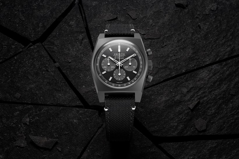 Ο λόγος για το Zenith Chronomaster Revival El Primero A384 Shadow, το οποίο διαθέτει μια κάσα με διάμετρο 37 mm που είναι κατασκευασμένη από εξαιρετικά ανθεκτικό και ελαφρύ τιτάνιο. Το καντραν του ρολογιού είναι μαύρο, ενώ οι χρονογράφοι έχουν γκρι απόχρωση. Οι δείκτες και οι ενδείξεις έχουν επικάλυψη Super-LumiNova SLN C1 για μέγιστη αναγνωσιμότητα. Στο εσωτερικό του χτυπά ο εμβληματικός μηχανισμός Caliber 4061, ο οποίος προσφέρει 50 ώρες απόθεμα ισχύος και είναι εμφανής από το πίσω μέρος της κάσας. Το Zenith Chronomaster Revival El Primero A384 Shadow συνοδεύεται από ένα λουράκι από καουτσούκ με ανάγλυφο εφέ Cordura και η τιμή του είναι 8.000 ευρώ.