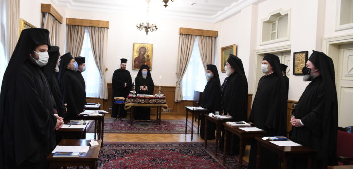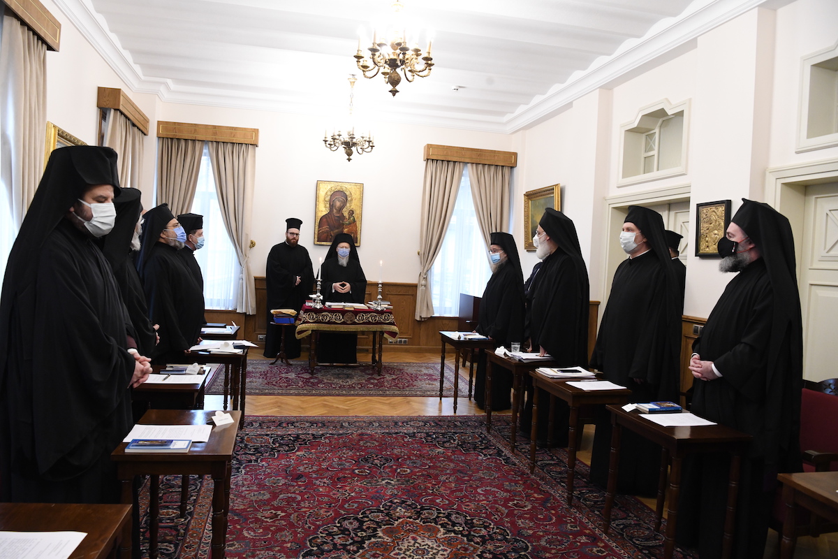 Συνῆλθεν, ὑπό τήν προεδρίαν τῆς Α.Θ. Παναγιότητος τοῦ Πατριάρχου, ἡ Ἁγία καί Ἱερά Σύνοδος κατά τό τριήμερον 16-18 Φεβρουαρίου 2021, ἐν τῇ ἐν Φαναρίῳ ἕδρᾳ αὐτῆς, τηρουμένων πάντων τῶν προβλεπομένων ὑπό τῆς ἰσχυούσης νομοθεσίας μέτρων ἔναντι τῆς πανδημίας τοῦ κορωνοϊοῦ covid-19, ἐπικυρώσασα τά Πρακτικά προγενομένων συνεδριῶν καί ἐξετάσασα ἅπαντα τά ἐν τῇ ἡμερησίᾳ διατάξει ἀναγεγραμμένα θέματα, ἐφ᾿ ὧν καί ἐλήφθησαν αἱ προσήκουσαι ἀποφάσεις.