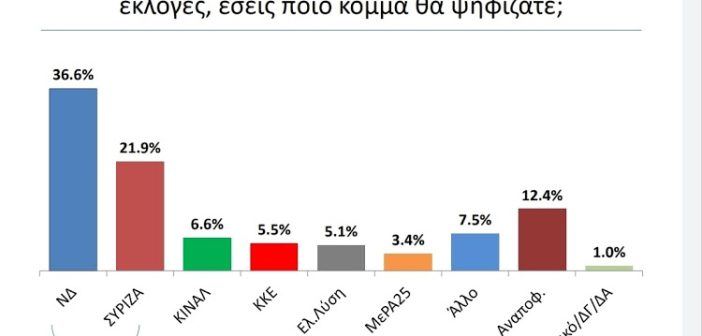 «Επιμένει» στην πρωτιά η ΝΔ, προηγείται με 14,7 μονάδες διαφορά από τον ΣΥΡΙΖΑ