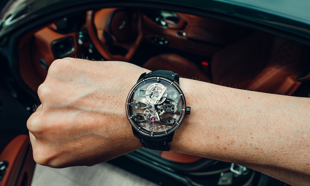 Μετά τις Bugatti, McLaren και Bentley έφτασε η σειρά της Aston Martin να παρουσιάσει ένα ρολόι χειρός. Πρόκειται για ένα κομψοτέχνημα που δημιουργήθηκε από κοινού με τον οίκο υψηλής ωρολογοποιίας Girard-Perregaux και θα κατασκευαστεί σε μόλις 18 αντίτυπα.Το ρολόι έχει την επωνυμία Tourbillon with Three Flying Bridges και αποτίνει φόρο τιμής στο ρολόι τσέπης “Three Bridges” του 19ου αιώνα.Σήμα κατατεθέν του είναι φυσικά οι τρεις «γέφυρες» (three bridges) που συνιστούν το πιο γνώριμο χαρακτηριστικό της Girard Perregaux. Πραγματικό καντράν δεν υπάρχει, ενώ το βλέμμα μαγνητίζει το βαρέλι στο 12, κάτω από το οποίο υπάρχει ένας σχεδόν αόρατος μικρο-ρότορας από λευκό χρυσό.Η μαύρη κάσα 44mm είναι από τιτάνιο βαθμού 5 με επικάλυψη DLC και έχει καμπυλωτά lugs και επίπεδο προφίλ. Συνολικά το «κλουβί» του τουρμπιγιόν απαρτίζεται από 79 εξαρτήματα που ζυγίζουν 250 mm και η διάμετρός του είναι μόλις 10 mm. Μέσα στους μηχανισμούς του ρολογιού υπάρχει η υπογραφή της Aston Martin, χαραγμένη στο προφίλ του ρότορα. «Και οι δύο μάρκες επιδεικνύουν πάθος για εκλεπτυσμένη χειροτεχνία και συνεργάζονται, μοιράζοντας τη γνώση τους πάνω στο σχεδιασμό, τα υλικά και την τεχνολογία», αναφέρει η Aston Martin. Θα παραχθούν μόλις 18 κομμάτια τα οποία διατίθενται μέσω εξουσιοδοτημένων αντιπροσώπων στην τιμή των 120.000 ευρώ, όσο δηλαδή περίπου κοστίζει η Aston Martin Vantage. Η συνεργασία των δύο εταιρειών ανακοινώθηκε τον Φεβρουάριο του 2021 και το Tourbillon with Three Flying Bridges είναι το πρώτο κοινό τους δημιούργημα.