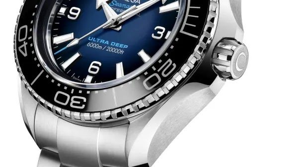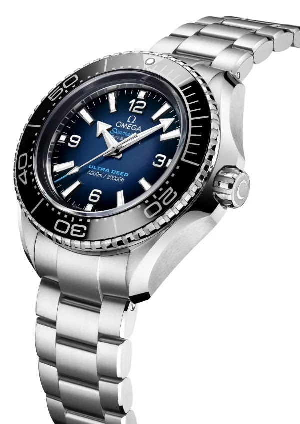 Αυτό είναι το “Ultra Deep” της Omega, σειράς Seamaster Planet Ocean 6000M, με μπρασελέ από ατσάλι O‑MEGASTEEL και καντράν μπλε με διαβάθμιση προς μαύρο. Επίπεδο στεγανότητας στα 6000 μέτρα δοκιμασμένο σε πραγματικές συνθήκες ωκεανού κατά την παραγωγή του και πληροί το standard ISO 6425:2018 για καταδυτικά ρολόγια. Το μέγεθος πλαισίου 45.5mm από ατσάλινο υλικό O-MEGASTEEL. Διαθέτει μαύρη κεραμική στεφάνη μονής περιστροφής και βιδωτή κορώνα. Δυνατότητα αλλαγής ώρας σε διάφορες ζώνες χωρίς να σταματήσει η λειτουργία του ρολογιού. Τα στοιχεία και οι δείκτες είναι από λευκό χρυσό 18Κ και περιέχουν φωσφορίζον λευκό υλικό Super-LumiNova. Μηχανισμός αυτόματος Omega calibre 8912 Co-Axial συστημα διαφυγής, αυτονομία 60 ώρες power reserve και πιστοποίηση Master Chronometer. Το μπρασελέ είναι κι αυτό από ατσάλι O-MEGASTEEL με αναδιπλούμενο κλείσιμο, ενώ διαθέτει και καταδυτική επέκταση. Συνοδεύεται από 5 χρόνια εγγύηση επίσημης αντιπροσωπείας Omega μέσα στο ειδικό κουτί συσκευασίας του.