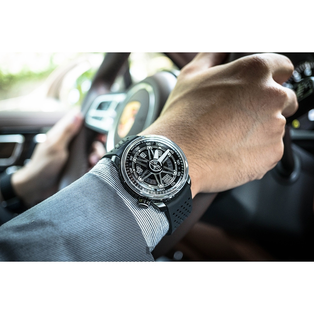 Η όλη αισθητική των ρολογιών είναι χαρακτηριστική: στιβαρή κάσα από ανοξείδωτο ατσάλι με επίστρωση μαύρου PVD σε διάμετρο 43 χιλιοστών· καντράν με αραβικούς αριθμούς σε αρχαιελληνική γραμματοσειρά· αιχμές δόρατος στις ενδείξεις των ωρών· πλεκτό δερμάτινο λουράκι με διπλή λωρίδα δέρματος σε μπλε ή κόκκινο χρώμα.