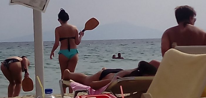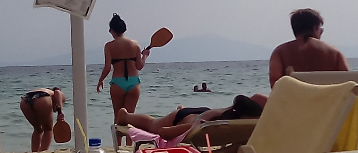 Η ιστορία που θα σας πω έγινε πριν από 6 μήνες σε ένα νησί κοντά στην Αθήνα. Είχαμε πάει για τριήμερο και για ξεκούραση γιατί και οι δυο είχαμε κούραση λόγω παιδιών και δουλειάς. Μόλις φτάσαμε στο ξενοδοχείο αφήσαμε τα πράγματα μας και πήγαμε σε μια απομονωμένη παραλία, γιατί και η γυναίκα μου είχε και λίγο κόμπλεξ με τα παραπανίσια κιλά της. Στην παραλία ήμασταν εμείς στη μία άκρη και στην άλλη ένας πιτσιρικάς γύρω στα 20 που ψάρευε. Η γυναίκα μου έβγαλε το πάνω μέρος του μαγιό της και άφησε ελεύθερα τα μεγάλα και πεσμένα στήθη της. Μπήκαμε στην θάλασσα για κανένα 10λεπτο και μετά βγήκαμε και φάγαμε ένα σάντουιτς.