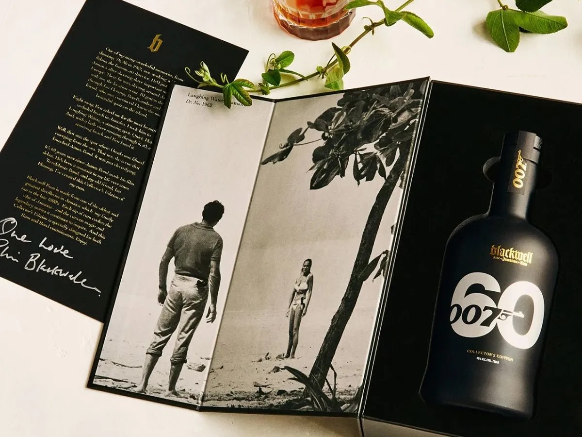 Το ποτό με το οποίο συνδέεται περισσότερο ο James Bond είναι, φυσικά, το Martini, αλλά το νέο μπουκάλι περιορισμένης έκδοσης με θέμα τον πράκτορα 007 είναι γεμάτο με ρούμι. Ο θρύλος της μουσικής βιομηχανίας, Κρις Μπλακγουέλ, ο οποίος είναι ιδιοκτήτης του σπιτιού του Ίαν Φλέμινγκ στην Τζαμάικα και ιδρυτής του Blackwell Rum, έχει λανσάρει στην αγορά μία συλλεκτική έκδοση του Blackwell Fine Jamaican Rum (70cl/750ml), το οποίο θα διατεθεί σε μια άκαμπτη θήκη -αριθμημένη με το χέρι- που θα περιλαμβάνει την εμβληματική σκηνή Dr. No που ξεκίνησε το franchise του James Bond.