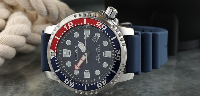 Ανδρικό αναλογικό ρολόι της εταιρίας Citizen, μεγάλου μεγέθους με καουτσούκ λουράκι σε μπλε χρώμα. Διαθέτει μηχανισμό μπαταρίας, ο οποίος βασίζεται στην ηλεκτρική ενέργεια που παρέχει η μπαταρία, με αποτέλεσμα να υπάρχει ακρίβεια και αντοχή. Είναι κατάλληλο για ελεύθερη κατάδυση με εξοπλισμό. Το ρολόι διαθέτει ανθεκτικότητα στο νερό έως 20 atm/200 μέτρα. Οι τιμές δεν σχετίζονται με το βάθος κατάδυσης αλλά με την ατμοσφαιρική πίεση που χρησιμοποιείται κατά τη διάρκεια της δοκιμής αντοχής στο νερό. Διαθέτει ανθεκτικότητα που το καθιστά κατάλλλο για ακραία περιβάλλοντα και συνδυάζει τη λειτουργικότητα με την καινοτόμα τεχνολογία.