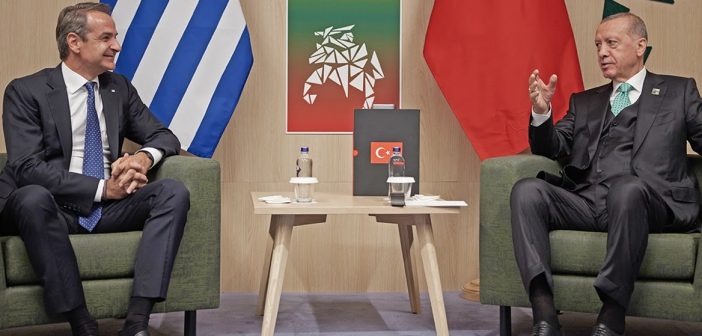 Σε ανακοίνωσή του, το Μέγαρο Μαξίμου σημειώνει ότι οι κ.κ. Μητσοτάκης και Ερντογάν συμφώνησαν ότι είναι προς όφελος των δύο χωρών το θετικό κλίμα που έχει διαμορφωθεί στις διμερείς σχέσεις τους τελευταίους μήνες να έχει συνέχεια και συνέπεια.