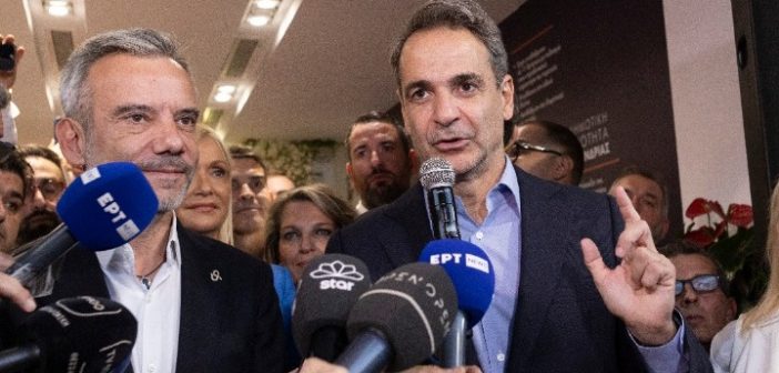 Κατά την άφιξη του στο εκλογικό κέντρο, ο πρωθυπουργός έγινε δεκτός με χειροκροτήματα από βουλευτές και στελέχη της ΝΔ, υποψήφιους του ψηφοδελτίου «Ναι στη Θεσσαλονίκη» και ψηφοφόρους.