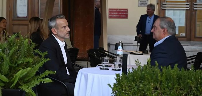 Στη νέα τους συνάντηση, σε γνωστό καφέ στο κέντρο της πόλης (στην πλατεία Αριστοτέλους) συζήτησαν για τα αποτελέσματα της πρώτης Κυριακής και τα ενδεχόμενα του δεύτερου γύρου των εκλογών. Η στήριξη της “καραμανλικής” πτέρυγας της Νέας Δημοκρατίας στον Κωνσταντίνο Ζέρβα, είναι δεδομένη.