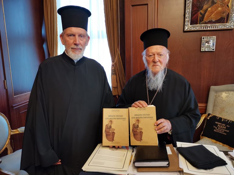 Επίδοση δίτομου έργου για τον Άγιο Νεκτάριο στον Οικουμενικό Πατριάρχη