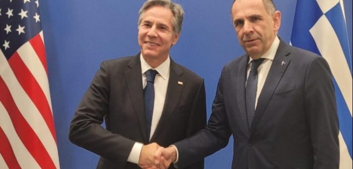 Ο Υπουργός Εξωτερικών Γιώργος Γεραπετρίτης είχε συνάντηση με τον επικεφαλής της αμερικανικής διπλωματίας, ‘Αντονι Μπλίνκεν στο περιθώριο της Συνόδου των Υπουργών Εξωτερικών του ΝΑΤΟ στις Βρυξέλλες.