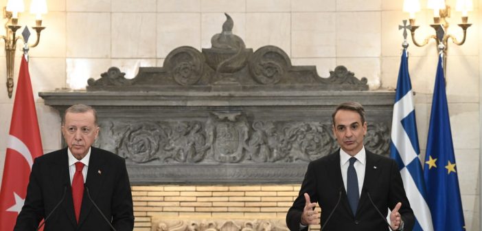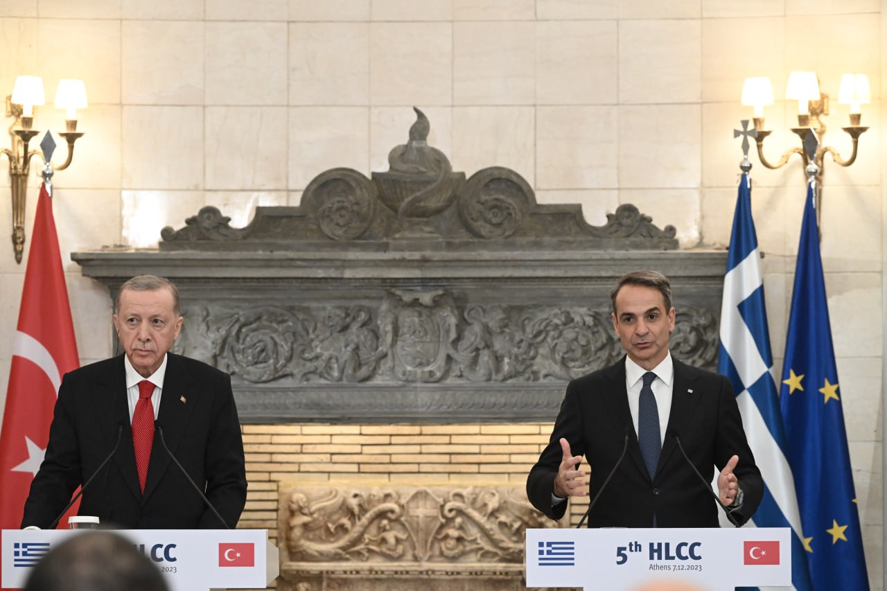 Περισσότερο από μιάμιση ώρα κράτησε η συνάντηση του πρωθυπουργού Κυριάκου Μητσοτάκη με τον Τούρκο πρόεδρο Ταγίπ Ερντογάν στο Μέγαρο Μαξίμου στη συνέχεια οι δύο ηγέτες έκαναν κοινές δηλώσεις στο πλαίσιο της συνεδρίασης του 5ου Ανώτατου Συμβουλίου Συνεργασίας Ελλάδας-Τουρκίας.