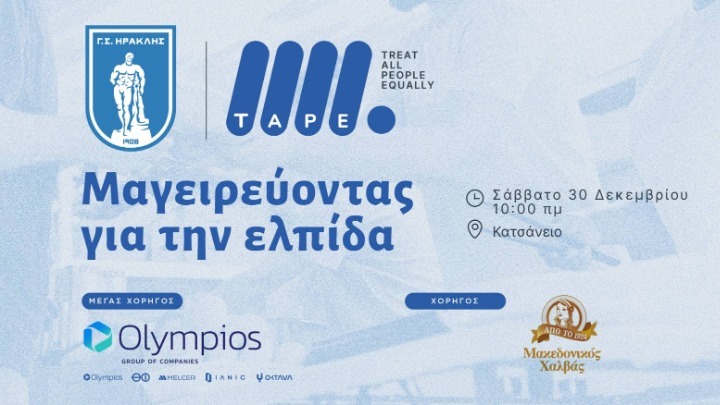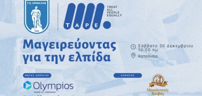Με σύνθημα «Μαγειρεύοντας για την Ελπίδα» ο Γ.Σ. Ηρακλής διοργανώνει φιλανθρωπική δράση προσφέροντας μερίδες φαγητού σε αδύναμους συμπολίτες μας. Η εκδήλωση θα πραγματοποιηθεί το Σάββατο 30/12, στις 10 το πρωί, στο κλειστό γυμναστήριο «Κατσάνειο» της Θεσσαλονίκης.