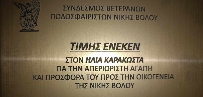 Αξίζει να σημειωθεί, πως την βράβευση του Ηλία Καρακώστα ανέλαβε ένας άνθρωπος που ήταν ηγετική μορφή της διοίκησης με τεράστια προσφορά στην ομάδα και νυν γενικός γραμματέας του συνδέσμου βετεράνων της, ο Θεόδωρος Θεοδώρου (πρώην γενικός αρχηγός και γαμπρός του αείμνηστου Γεωργίου Τραγουδαρά), ο οποίος διετέλεσε γενικός αρχηγός του συλλόγου από το 1988 έως το 1992, την περίοδο που αγωνίστηκε και ο άλλοτε αμυντικός ογκόλιθος και αρχηγός του Νίκης Βόλου, Ηλίας Καρακώστας.