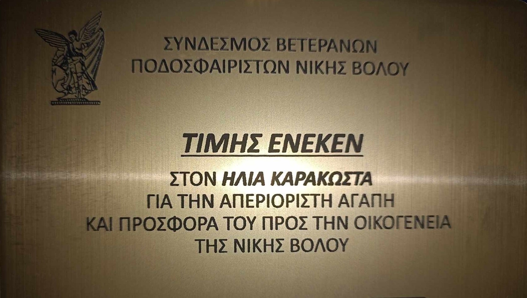Ο Ηλίας Καρακώστας τιμήθηκε ως άνθρωπος της Νίκης Βόλου, ως σπουδαίος ποδοσφαιριστής με μεγάλη προσφορά στην ομάδα, αλλά και ως επιστήμονας στο χώρο του ποδοσφαίρου που προσφέρει με το FYSIO SPORTS CENTER. Υπηρεσίες πρόληψης αποκατάστασης και προπονητικής, μαζί με την σπουδαία φυσιοθεραπεύτρια, Αναστασία Παυλίδου, που εξειδικεύεται και στον βελονισμό.