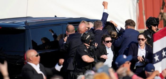 Οι εικόνες του Ντόναλντ Τραμπ με σηκωμένη τη γροθιά του στον αέρα, με το αίμα να τρέχει στο πρόσωπό του, και τις Μυστικές Υπηρεσίες να ορμούν πάνω του για να τον προστατεύσουν και να τον απομακρύνουν από το βήμα οπού μιλούσε στη συγκέντρωσή του στην Πενσυλβάνια δεν γράφουν απλώς ιστορία – μπορεί κάλλιστα να αλλάξουν την πορεία των προεδρικών εκλογών του Νοεμβρίου.